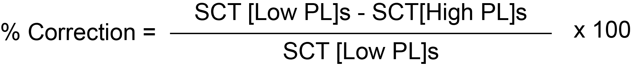 b. The SCT ratio for the confirmatory test [high PL concentration] is derived from:
